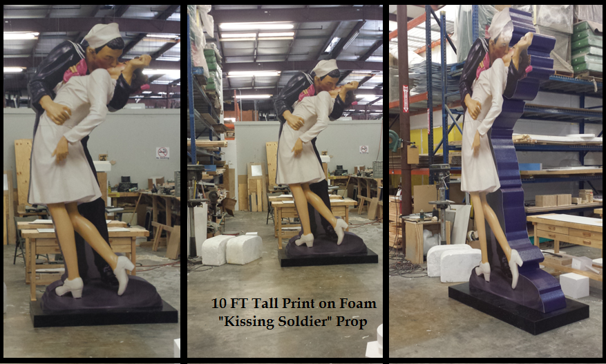 This 10-foot “Kissing Soldier” display is a high-impact print-on-foam installation designed for events, lobbies, and experiential marketing. Built using layered foam construction, it delivers the look of a dimensional sculpture while remaining lightweight, cost-effective, and easy to install. Perfect for photo opportunities, themed environments, and brand activations.